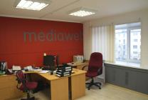 В приемной и одном из кабинетов офиса появились стенки с фирменной символикой.